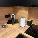 Una cucina completamente attrezzata è disponibile nelle camere di quest'appartamento.